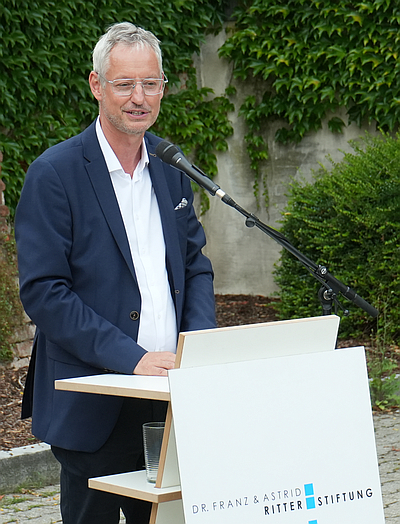 Die Frage, ob man sich stärker mit der Vergangenheit verbinden oder sich mutig in die Zukunft bewegen sollte, ist nach Auffassung des Kuratoriumsvorsitzenden der Ritter-Stiftung eine der zentralen Herausforderungen, vor denen jeder Mensch irgendwann im Leben stehe. Die Vergangenheit trage Erinnerungen, Erfahrungen und Lektionen in sich, die prägend und wertvoll seien. Die Zukunft symbolisiere Ungewissheit, Neugierde, Hoffnung, neue Möglichkeiten und das Potential für Entwicklung und damit auch die Notwendigkeit für Veränderung. Wörtlich sagte Gruber: „In dieser Abwägung zwischen dem, was war, und dem, was sein könnte, liegt eine Spannung, die uns oft herausfordert, wie auch heute als Betrachter.“
