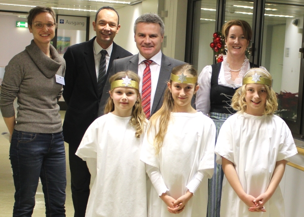 In Begleitung von Chefärzten, Vertretern der Pflege und drei Engeln machte Landrat Peter Dreier einen Rundgang durch die Patientenzimmer und überbrachte den Patienten persönlich die besten Wünsche. Für die musikalische Umrahmung der Ansprache und des Rundgangs sorgte die Blaskapelle Frauenberg unter der Leitung von Michael Knauer. Die Rolle der Engel übernahmen Töchter von Mitarbeitern und Kinder der Karl-Heiß-Grundschule.