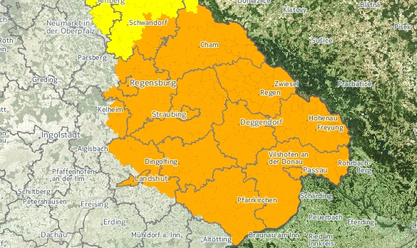 (jh) Die Unwetterwarnung für den ostbayerischen Raum ist inzwischen aufgehoben worden. Stattdessen weißt der Deutsche Wetterdienst für diese Region eine Amtliche „Warnung vor markantem Wetter“ aus. Das bedeutet: „Die erwartete Wetterentwicklung ist nicht ungewöhnlich, aber gefährlich. Es können vereinzelt oder örtlich Schäden auftreten. Informieren Sie sich regelmäßig über die Wetterentwicklung, seien Sie vorsichtig und vermeiden Sie riskantes Verhalten.“