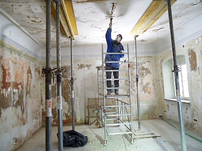 Neben bauhistorischen Untersuchungen, einer Befunderhebung an den Wand- und Deckenoberflächen sowie der Dokumentation des Baubestands wird zusätzlich eine begleitende Archivalienrecherche zur Baugeschichte des Rathauses durchgeführt.