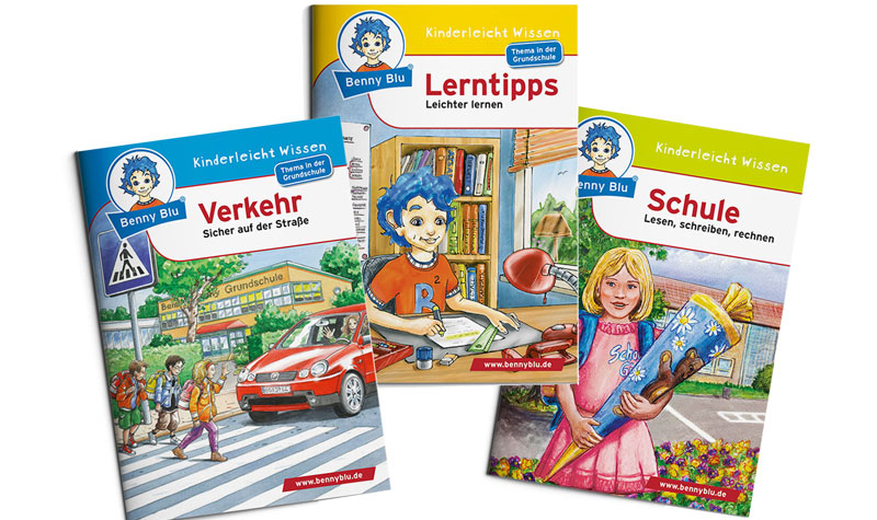 Benny Blue begleitet Schulanfänger und deren Eltern in drei Exemplaren:
