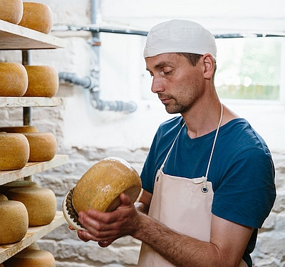 Manchmal monatelang liegen die Laibe hier unten auf den Holzregalen. Aber: „Ohne Pflege geht es nicht“, sagt Redlef, „wir müssen die Laibe regelmäßig wenden, mit Salzwasser bearbeiten und bürsten.“ Und guter Käse braucht zusätzlich Leidenschaft. Wer die beiden da unten in ihrem Keller bei der Arbeit beobachtet, wird verstehen, was gemeint ist. Schmecken tut man das später. Und wieder stehen ein paar Touristen am Gatter; besichtigen die wilde Herde, bestaunen den Hof. „Dürfen wir uns das mal ansehen. Können wir mal probieren?“ Dürfen sie, können sie. Bei Landwirten, bei Nationalpark-Partnern, aus Liebe und aus Leidenschaft.