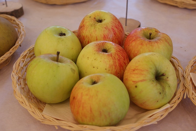 Die Sorte „Schöner von Wiltshire“ ist gerade in Niederbayern eine häufig anzutreffende alte Apfelsorte, die vermutlich auf die Grafschaft Wiltshire in England zurückgeht. Sicher ist, dass sie vor 1880 entstanden ist und im Vilstal erstmals um 1920 fälschlich als „Weiße Wachsrenette“ angeboten wurde. Dieser Name hat sich aber beinahe in ganz Bayern durchgesetzt. „Es ist eine beliebte, robuste und wohlschmeckende Wintersorte“, begründete Kreisfachberater Niedernhuber die Wahl. „Der Ertrag ist früh, hoch und relativ regelmäßig. Zudem ist der Apfel wenig anfällig für Schorf.“